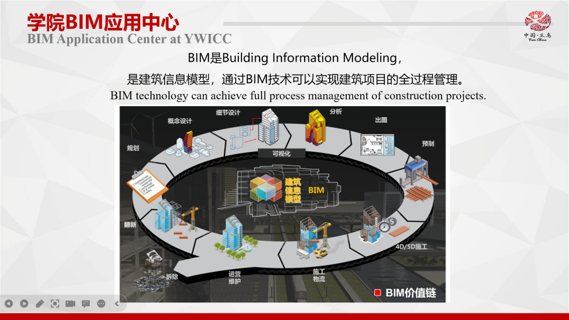 2023年12月25日下午,BIM应用中心相关老师在马来西亚拉曼理工大学开展了“浙中BIM应用及智能建造”主题讲座,拉曼理工大学师生100余人参加了此次讲座。讲座主要介绍了 BIM应用中心成立以来的相关成果。BIM应用中心,是在义乌市住房和城乡建设局的指导下,由sunbet申搏和义乌市建筑行业协会联合成立,主要开展基于BIM技术全生命周期的应用研究,推进义乌市建筑行业转型升级,促进地方经济发展。