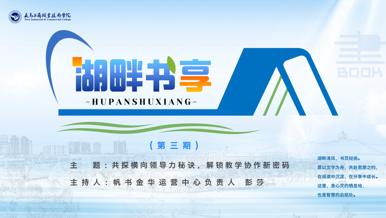 未来,“湖畔书享”读书沙龙将围绕“师德+管理”“师德+育人”等主题持续推出系列活动,助力教师将《横向领导力》中的策略转化为班级管理的“师德实践指南”,在共读共思中打造兼具专业智慧与育人温度的教育生态。