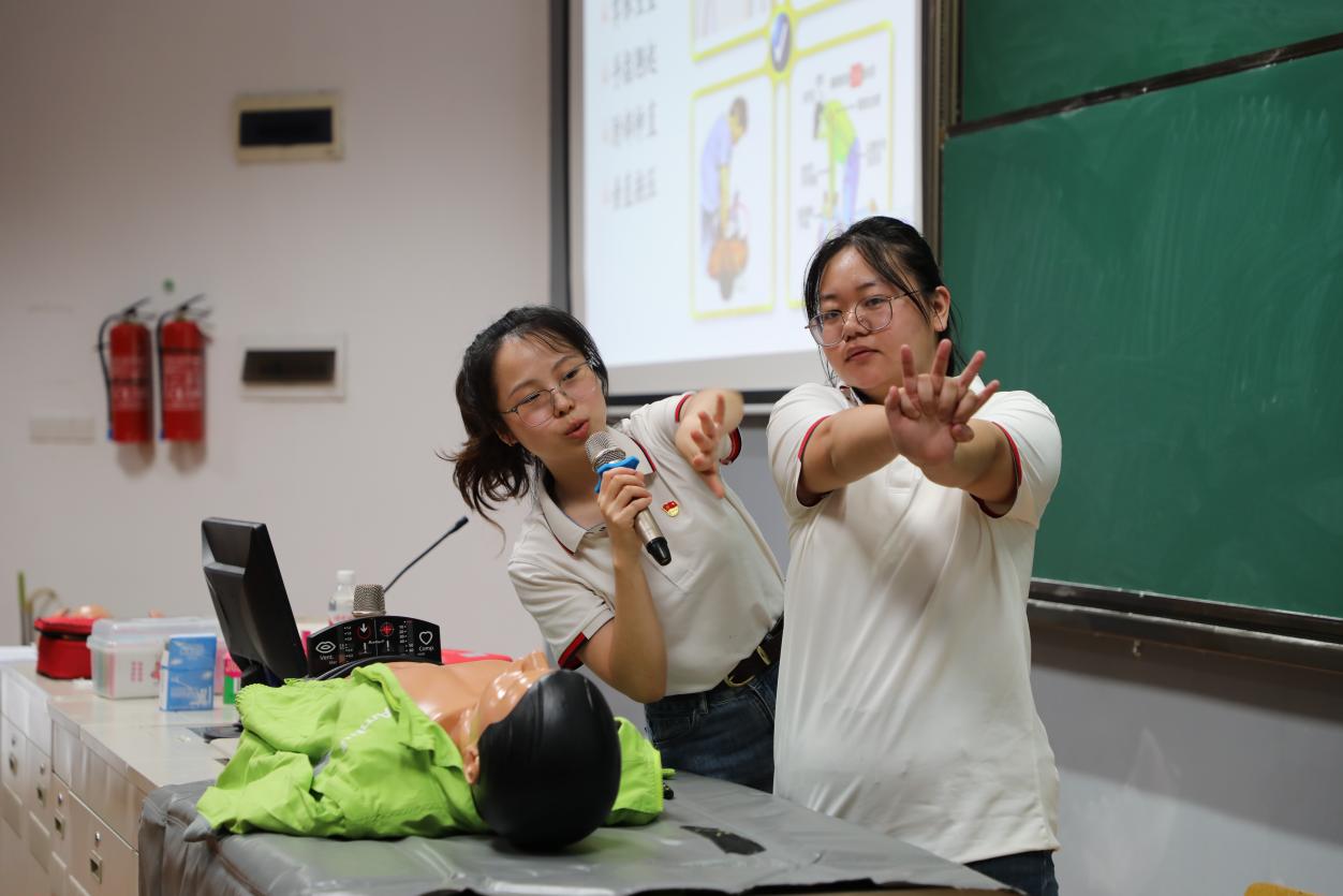 本次培训聚焦应急救护核心需求,特邀义乌市卫生进修公司曹老师、傅老师担任主讲。课堂上,授课教师结合生动动画演示、真实急救案例与现场教学示范,围绕心肺复苏术(CPR)、海姆立克急救法、体外自动除颤仪(AED)使用等关键内容展开详细讲解。从急救黄金时间的把握,到心肺复苏按压深度与频率的规范,再到AED开机操作的每一个步骤,教师均逐一拆解、耐心答疑,确保理论知识传递精准易懂,为学子搭建扎实的急救知识框架。