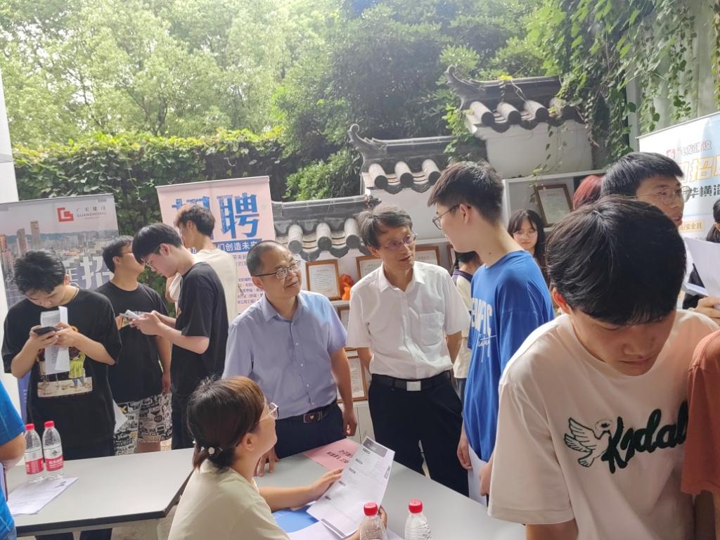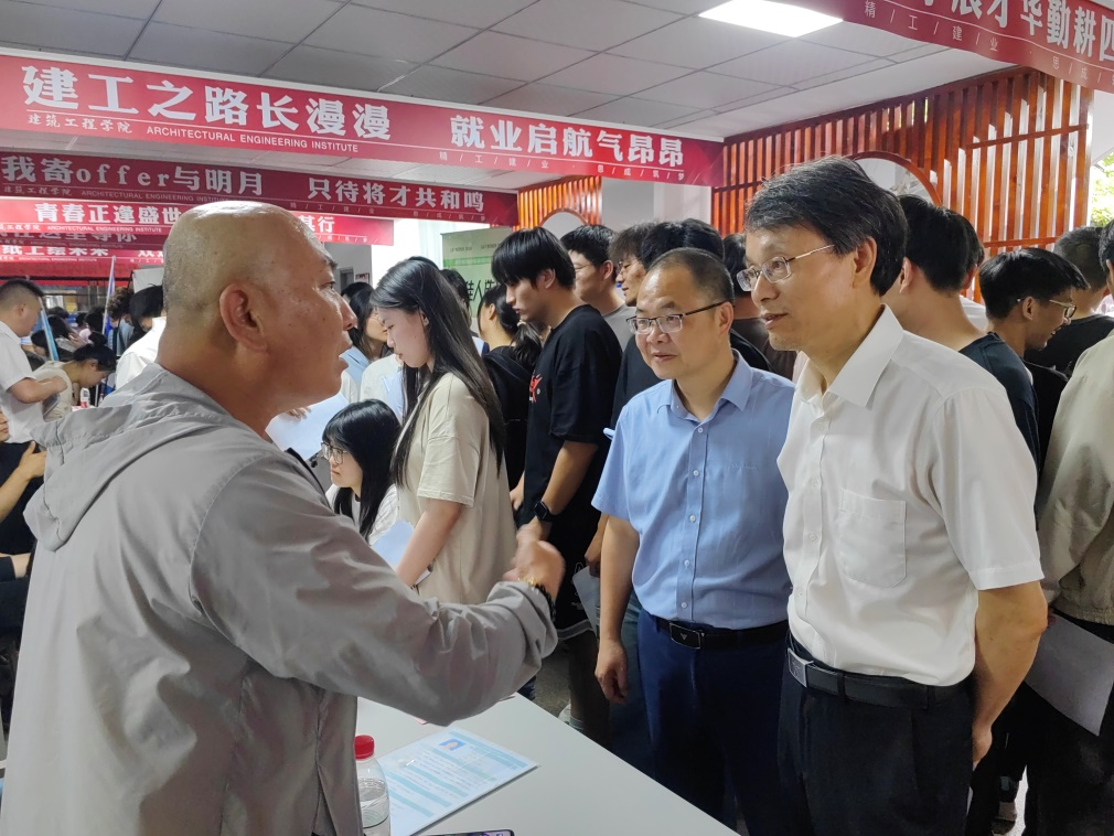 双选会期间,党委书记李昌祖先后来到广宏建设集团有限公司、浙江汉宇设计有限公司、春晗环境建设股份有限公司、浙江锦辉建设有限公司等招聘展位前,与企业招聘代表进行了亲切交流,了解用人单位招聘计划、岗位要求和现场招聘情况,积极向用人单位推介员工。