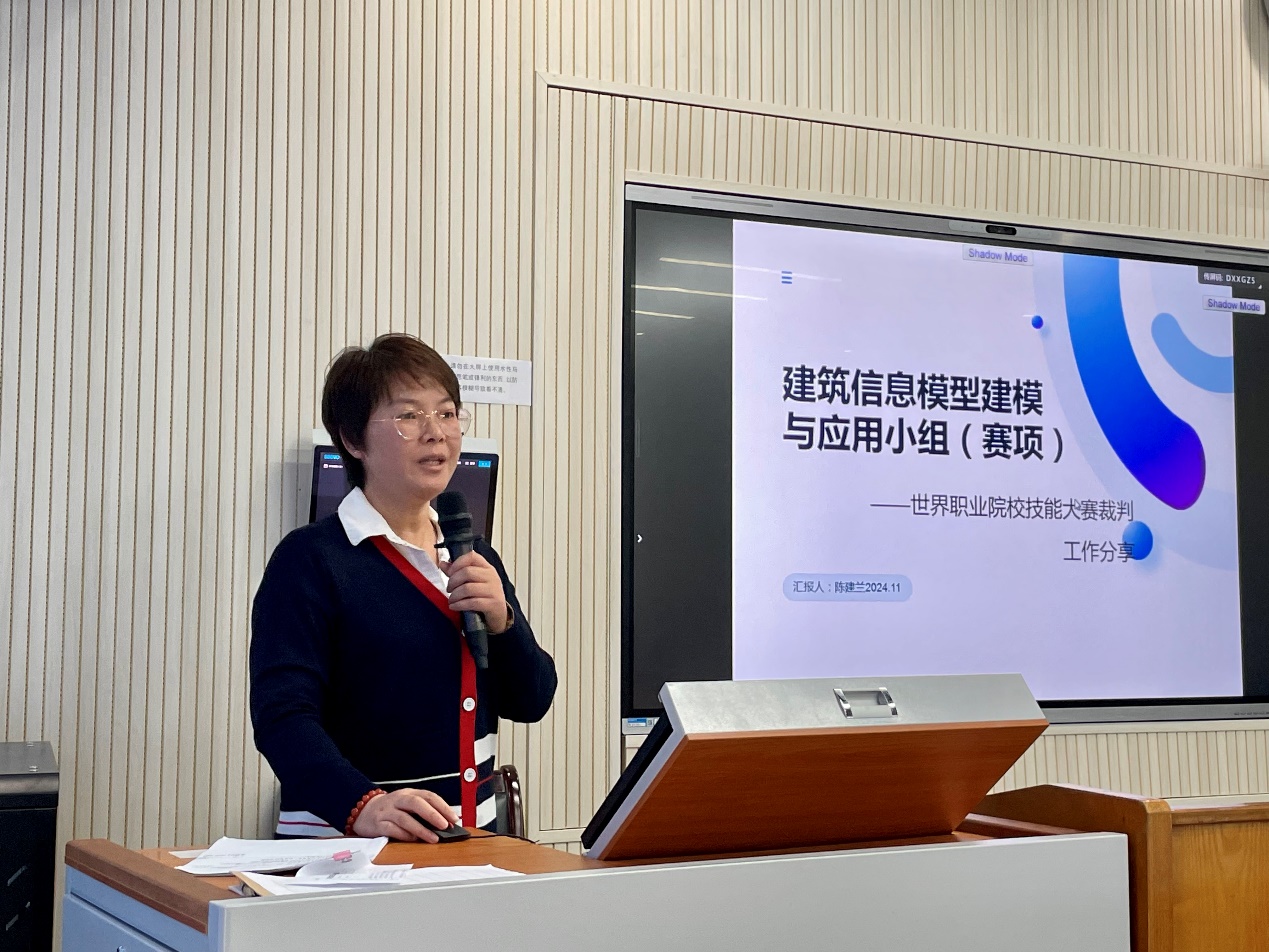 紧接着,周洁老师复盘了她带队参加世界职业院校技能大赛总决赛获得铜奖的全过程。她强调,竞赛要求的变化要求指导教师和员工必须具备快速应变的能力,过程中应当以评委的关注点作为准备重点。陈小琴老师总结了她近两年指导员工参加“装配式建筑智能建造”赛项的经历。她认为建筑类专业准备竞赛时一定要“走出去、多看看”,通过实地调研和学习,将理论知识具象化。同时,实时关注员工心理健康,也是整个备赛过程中重要的一环。